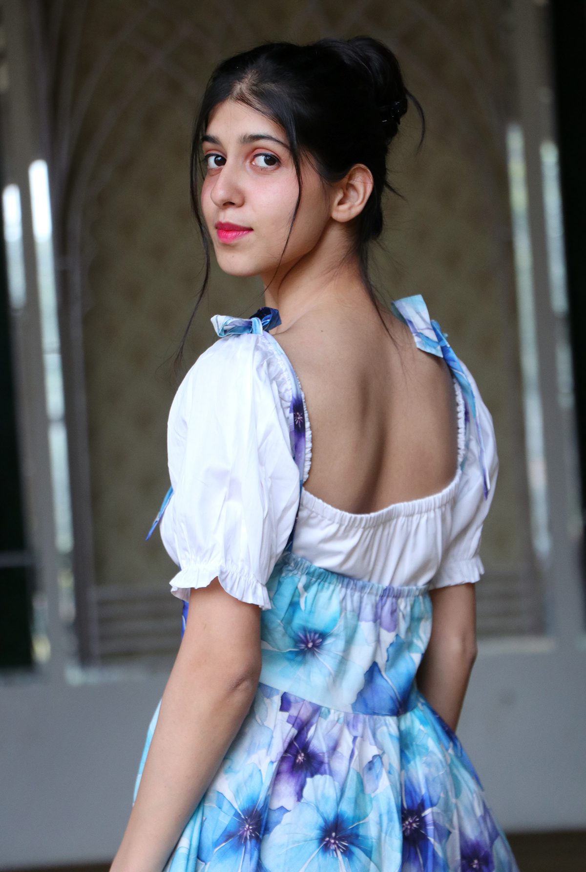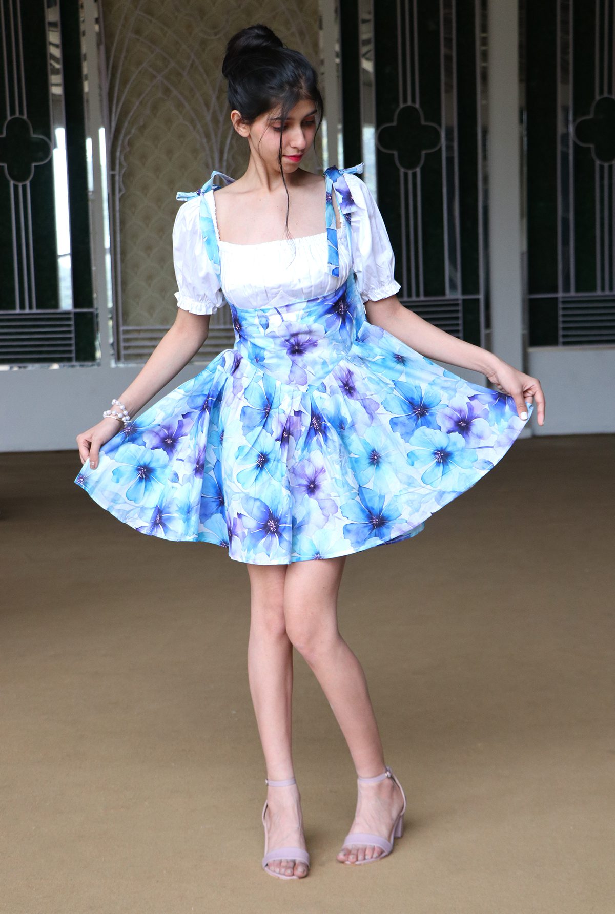 The fabric printed design showcasing delicate Baby Cosmos flowers in soft, pastel hues. The floral pattern is expertly arranged to create a sense of whimsy and charm.